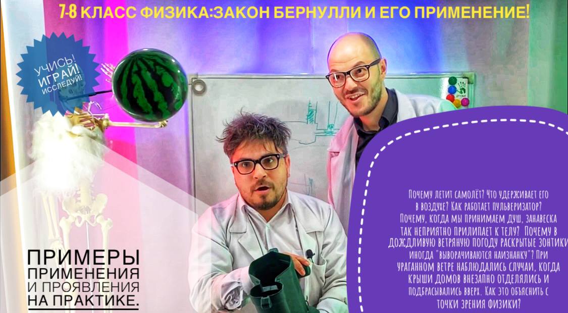 7-8 класс физика: Закон Бернулли его применение и проявления на практике. Демонстрации.