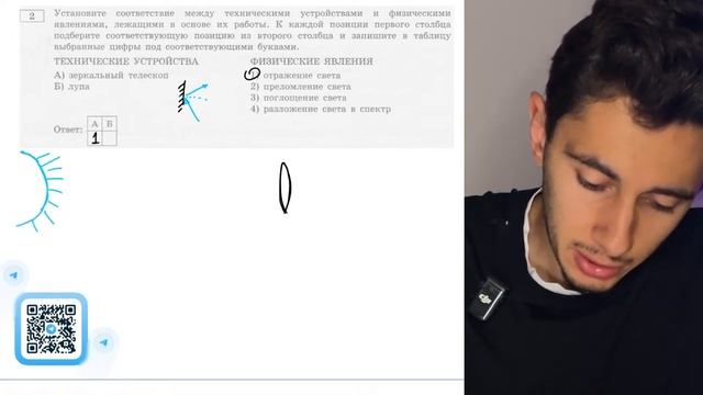 А) зеркальный телескоп Б) лупа 1) отражение света 2) преломление света 3) поглощение света - №20090