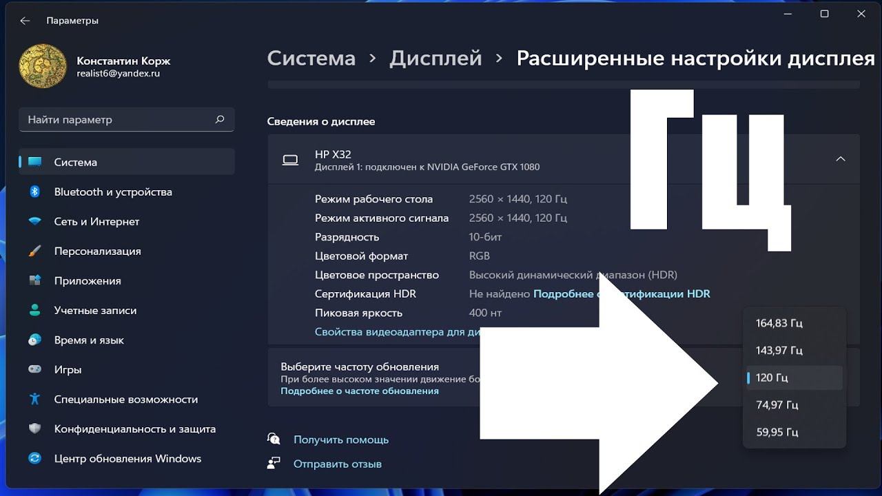 Как изменить частоту монитора в Windows 11 ?