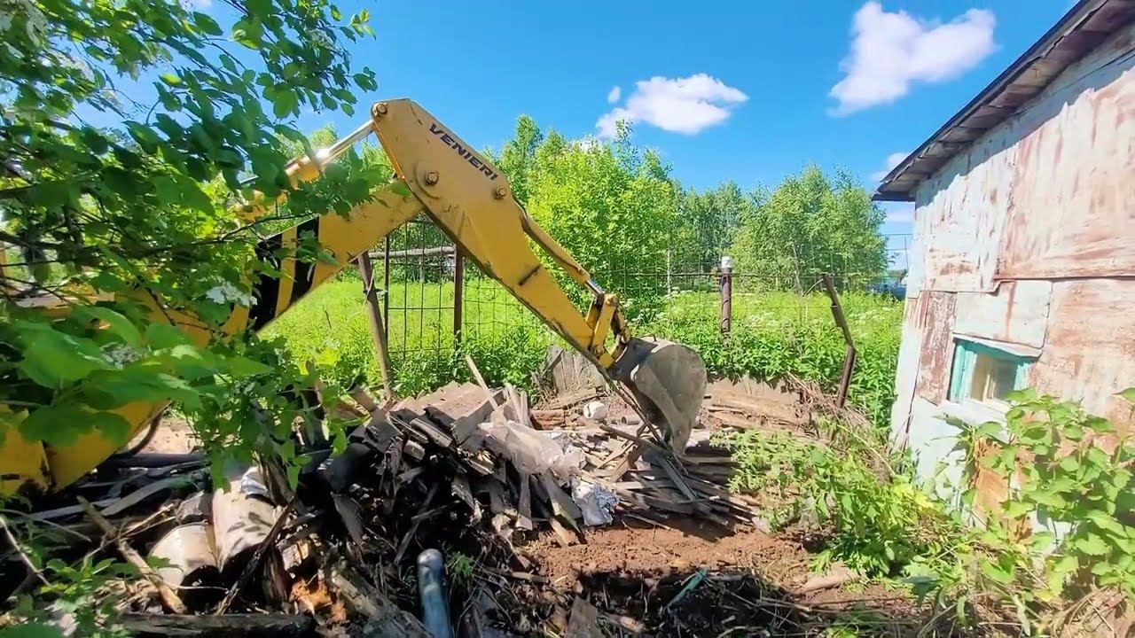 Работа трактора по приборке участка. Выкорчевывание деревьев. Планирование участка.