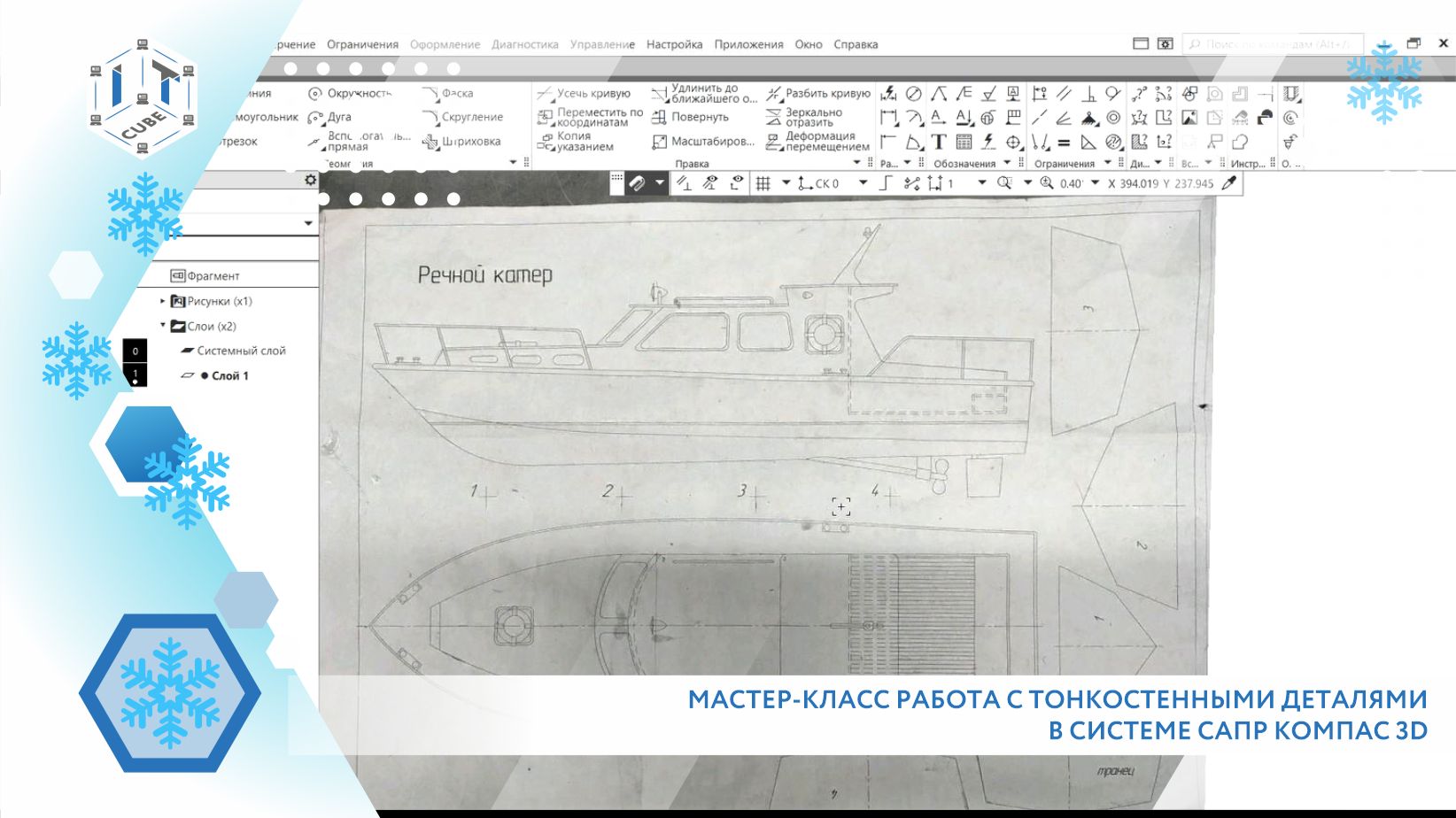 Сегодня свой мастер-класс на тему “Работа с тонкостенными деталями в системе САПР КОМПАС 3D” проведет педагог центра “ТЕХНО-IT-куб” Владимир Заев. Для работы требуется программное обеспечение САПР «Компас» Мастер-класс посвящен созданию 3D объекта рубка «Речного катера». В презентации рассматриваются последовательность, этапы, приемы и графические инструменты, с помощью которых из 2D чертежа создается 3D тонкостенный объект - рубка «Речного катера». Подходит для учащихся 14-18 лет Центр цифрового образования IT-куб. Хабаровск (ЦТЦО "ТЕХНО-IT-куб")