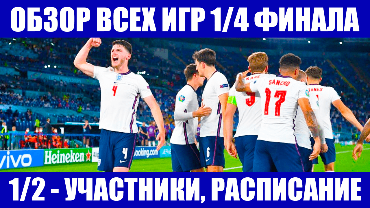 Футбол. Евро 2020. Обзор всех игр 1/4 финала. Участники игр 1/2 финала. Расписание игр 1/2 финала.