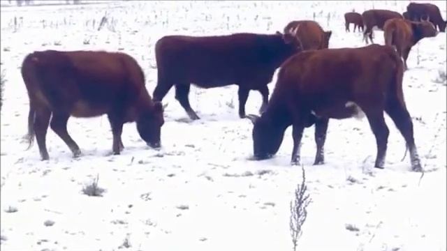 Калмыцкий скот пасется зимой на снегу