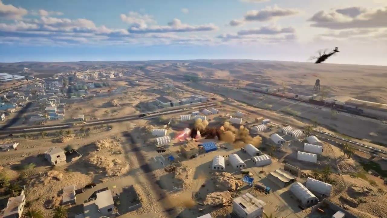 Ударный вертолёт наносит удары по скоплению противника в SQUAD 10.1