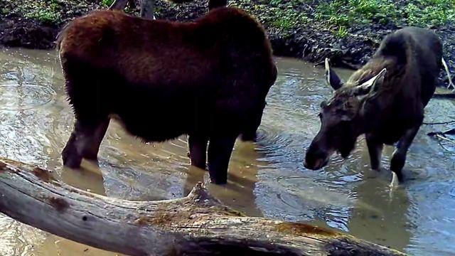 Беременная лосиха и медведь! Фотоловушка в лесу.