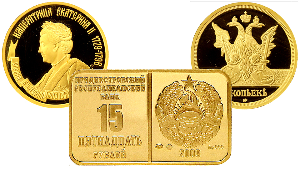 Золотые монеты Приднестровья выпуска 2009 года.