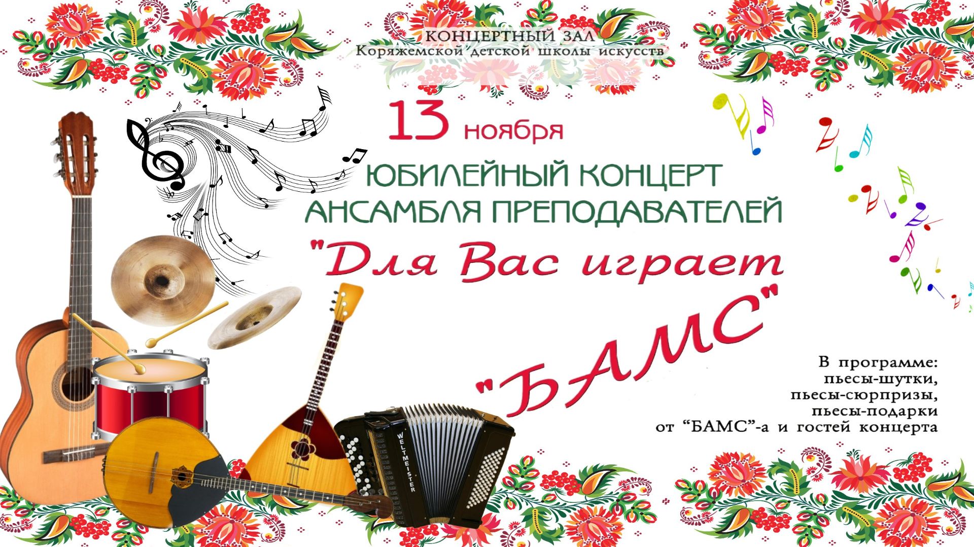 г.Коряжма | Юбилейный концерт ансамбля преподавателей «Для Вас играет «БАМС» | 13.11.2024 год