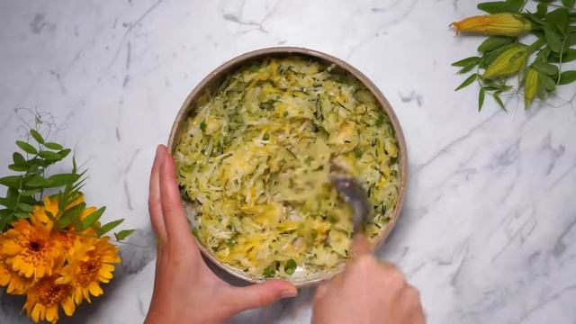 Как готовим? 1) Кабачки или цуккини натрите на крупной тёрке, можно взять разные виды и смешать. Переложите в миску, добавьте соль, перемешайте и оставьте на 10 минут, чтобы выделилась лишняя жидкость. Хорошенько отожмите кабачки руками или с помощью полотенца. 2) Пармезан и чеснок натрите на мелкой тёрке, зелёный лук мелко нарежьте. Смешайте кабачки, пармезан, лук, чеснок, яйцо и чёрный перец, добавьте муку и хорошо перемешайте. 3) На разогретую сковороду добавьте масло. Ложкой выложите оладьи и обжаривайте до готовности примерно по 5 минут с каждой стороны. 4) Оладьи можно запечь в духовке без добавления масла. Застелите форму или противень пергаментом, выложите оладьи и запекайте 25-30 минут при 180С. После первых 15 минут оладьи можно перевернуть. Подавайте со сметаной, зелёным луком и копчёной рыбой. Понравился рецепт? Ставьте лайк, если хотите больше видеорецепт от "ВкусВилл" :) ... Наш интернет-магазин: https://vkusvill.ru/goods/ Яндекс.Дзен с рецептами для тех, кто предпочитает читать: https://clck.ru/NwaiW Инстаграм для тех, кто за эстетику: https://www.instagram.com/vkusvill_ru... Приложение с бесплатной доставкой https://vkusvill.onelink.me/psD7/ed9b... Промокод ПервыйРаз подарит скидку в 100 рублей на первый заказ от 500 рублей Мы в Tik Tok: https://vm.tiktok.com/W8Gryk/ #вкусвилл #ВВрецепты #ВВготовит #рецептоладьи #оладьиизкабачков