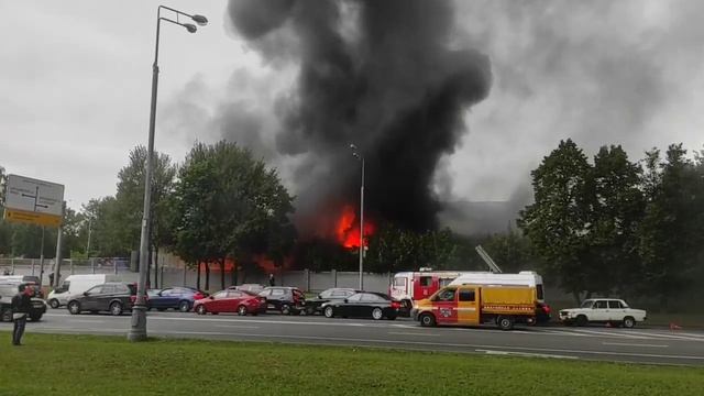 По данным МЧС на улице Подольских Курсантов горит отдельно стоящий металлический ангар.