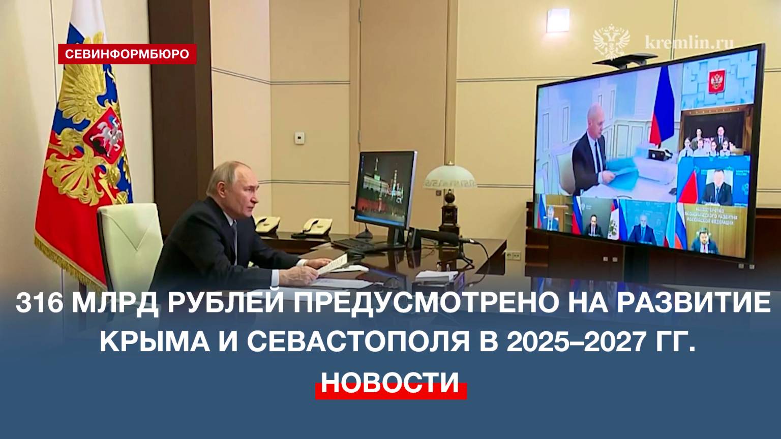 Свыше 316 миллиардов рублей предусмотрено в федеральном бюджете на реализацию госпрограммы развития Крыма и Севастополя в 2025–2027 годах. Об этом заявил президент России Владимир Путин на совещании по вопросам социально-экономического развития Крыма и Севастополя. Подписывайтесь на наш Телеграм-канал: https://t.me/nts_novosti Смотрите новости Севастополя и Крыма на сайте НТС: http://nts-tv.com В нашей группе "ВКонтакте": https://vk.com/ntssevastopol На странице в "Одноклассниках": https://ok.ru/ntssevastopol