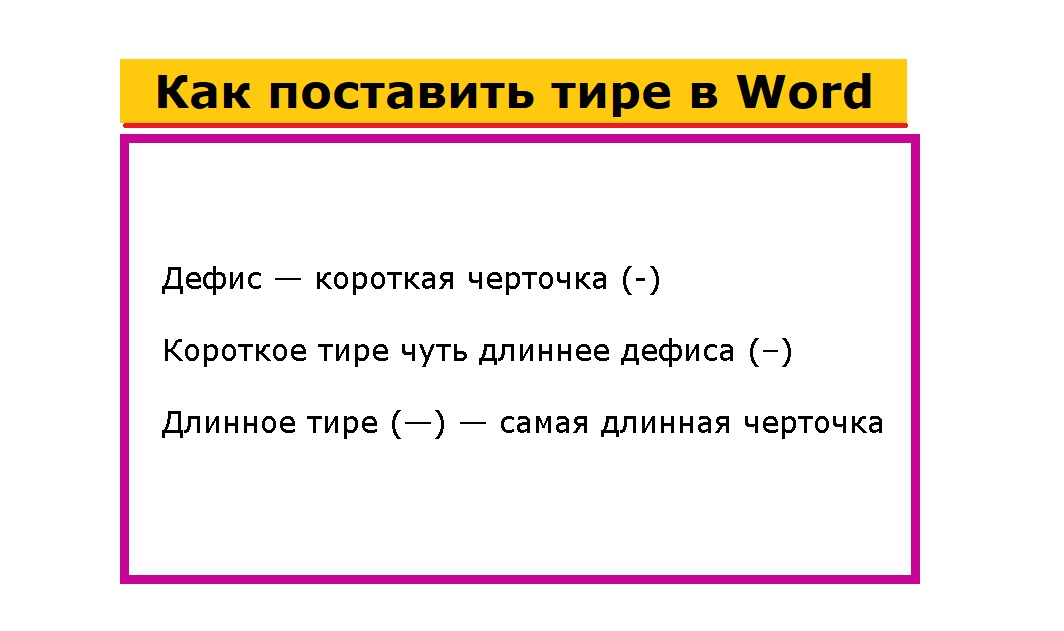 Как поставить длинное тире, короткое тире и дефис в программе Word