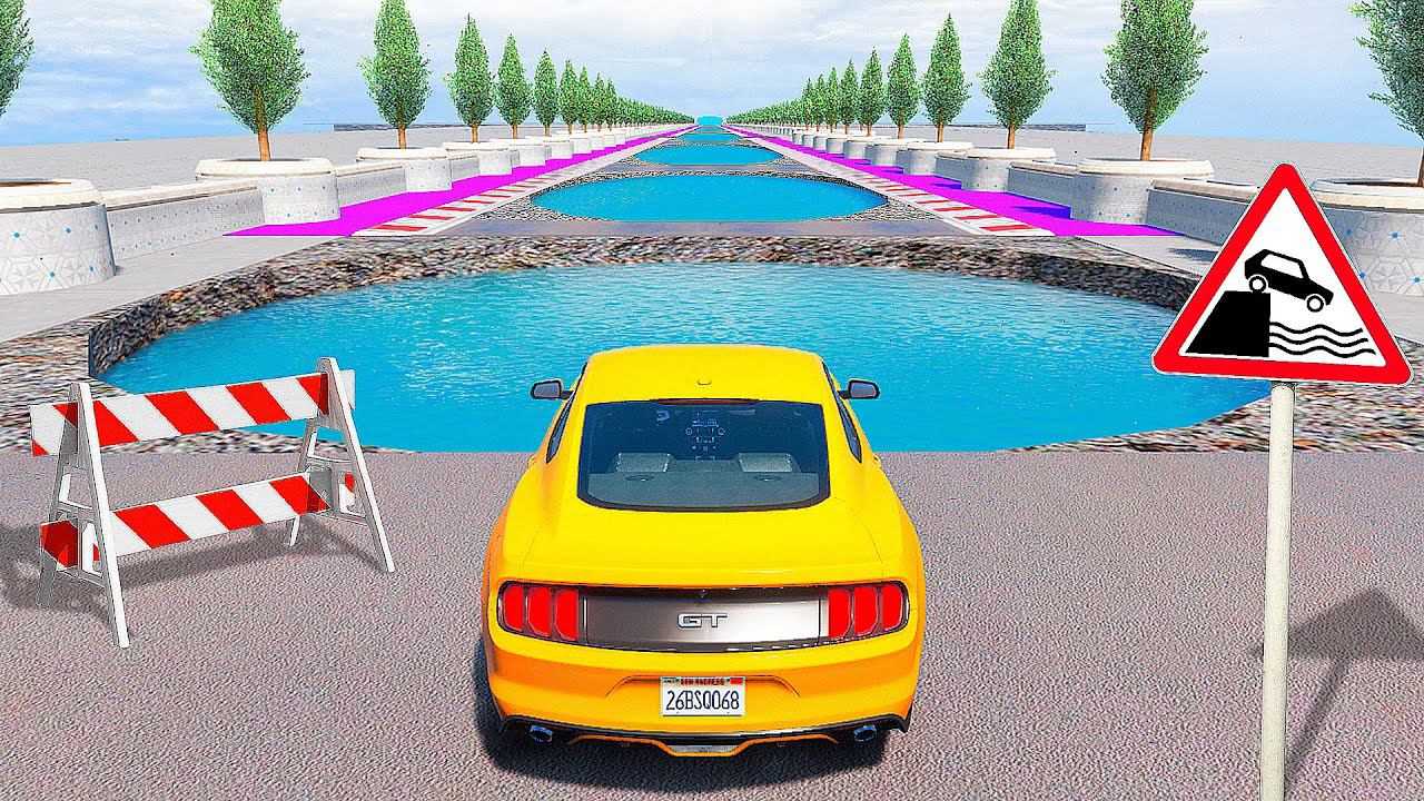 СМОЖЕТ ЛИ ФОРД МУСТАНГ ПРОЕХАТЬ ОПАСНУЮ ЯМУ С ВОДОЙ В ГТА 5 МОДЫ - ЭКСПЕРИМЕНТЫ GTA 5 MODS
