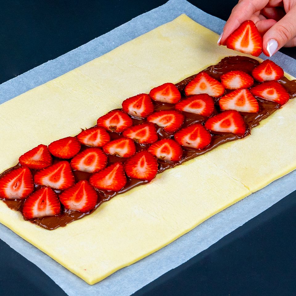 Любимый рецепт всей семьи! Десерт из слоеного теста всего за 10 минут. Ингредиенты: слоеное тесто: 400 г Нутелла : 60 г клубника: 150 г яйца : 1 шт. коричневый сахар: 10 г Напиток: клубника: 100 г лед: 70 г молоко: 150 мл растворимый кофе : 15 г сахар: 10 г горячая вода: 150 мл молоко: 60 мл взбитые сливки : 50 г Music: www.bensound.com Royaty Free Music: https://www.bensound.com License code: R8B3Q6F46SWLKTTS