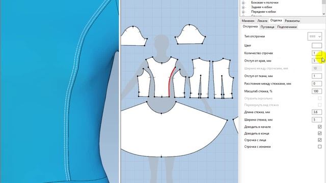 САПР Julivi - Программа "Электронный манекен″ - Оформление модели - Отстрочки