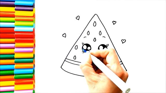 Симпатичный рисунок арбузного мороженого - Простые рисунки - Рисунок арбуза - Рисунок мороженого