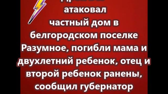 Дрон ВСУ атаковал частный дом в белгородском поселке Разумное, погибли мама и двухлетний ребенок