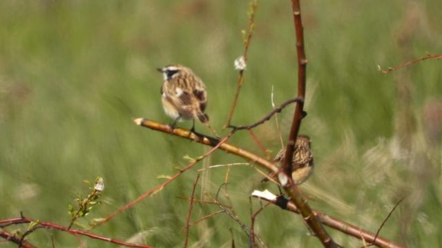 Луговой Чекан, самец и самка, наблюдение птиц в Новгородской области, 9 мая 2024