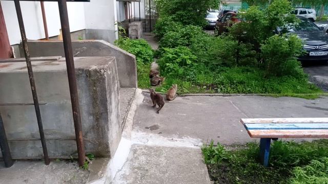 Уличные кошарики вышли покушать ^^