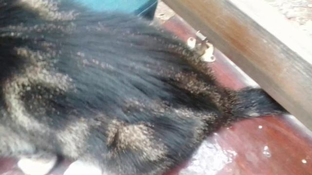 Перекус кошечки на лавочке
