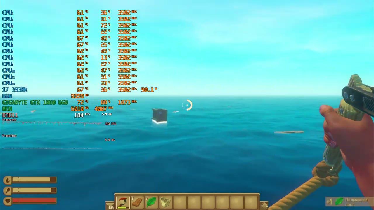 Game: Raft Сomputer characteristics: Socket: LGA 2011 Motherboard: Asus Sabertooth X79 Processor: i7 3930K 3.20GHZ RAM: HYPER X 16GB DDR3-DIMM 1600 GPU: GeForce® Gigabyte GTX 1060 WINDFORCE OC 6G (rev. 1.0/1.1) ROM: HDD 500GB OS+HDD 2TB+ HDD 1TB Video in 1920x1080 resolution. Operating system: Windows 10 Pro --- Timecodes - 0:00 - The beginning of the video