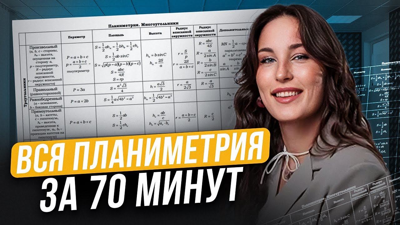 План подготовки к ЕГЭ на 5️⃣ ищи в моем тг-канале —https://t.me/+inTyuXwokswwNjdi Сдаешь ЕГЭ в 2026 году? Переходи по ссылке и забирай САМЫЕ выгодные условия подготовки со скидкой по промокоду "ЮТУБ" - https://clck.ru/3NoJSD А если у тебя не грузит это видео, то ты можешь посмотреть его в моем ВК - https://vk.com/kate_matematichka?from=search На связи Катя Математичка — твой препод по базовой математике. Осторожно — тут можно зашарить за математику, даже если ты полный 0 Готовитесь к ЕГЭ по базовой математике, но путаетесь в планиметрии? Треугольники, окружности, площади фигур – всё это можно выучить быстро и без стресса! В этом видео мы разберём ВСЮ планиметрию за 70 минут: от базовых формул до решения задач из реальных вариантов ЕГЭ. Что будет в видео? ✅ Полный разбор всех тем планиметрии, которые встречаются в ЕГЭ (база!) ✅ Четкая структура: от простого к сложному – без лишней воды ✅ Формулы и свойства фигур, которые нужно знать наизусть ✅ Разбор типовых задач с реальных экзаменов (и как их решать БЫСТРО!) ✅ Лайфхаки для запоминания сложных тем (например, теоремы синусов/косинусов) Подписывайся на канал! На нем ты найдешь полезную информацию о том, как сдать ЕГЭ по математике в 2026 году с нуля. 00:00-00:17- о чем видос 00:18 -1 задание (треугольники ) 02:10 - 2 задание 04:23 - 3 задание 05:36 - 4 задание 07:03 - 5 задание 08:42 - 6 задание 10:27 - 7 задание 12:32 - 8 задание 13:11 - 9 задание 15:10 - 10 задание 16:54 - 11 задание 20:39 - 12 задание 21:51 - 13 задание 24:38 - 14 задание 26:55 - 15 задание 30:32 - 16 задание (четырехугольники) 33:07 - 17 задание 34:45 - 18 задание 38:02 - 19 задание 40:00 - 20 задание 41: 34 - 21 задание 43:38 - 22 задание 45:36 - 23 задание 47: 24 - 24 задание 49:19 - 25 задание 52:56 - 26 задание 54:23 - 27 задание 55:52 - 28 задание 58:38 - база на 5 за 5 дней 59:14 - 29 задание ( окружности ) 01:00:48 - 30 задание 01:02:19 - 31 задание 01:04:07 - 32 задание 01:06:07 - 33 задание 01:07:13 - 34 задание 01:09:40 - 35 задание #егэматематика #егэпобазе #математикаегэ #базоваяматематика #егэ2026 #подготовкаегэ #егэленд
