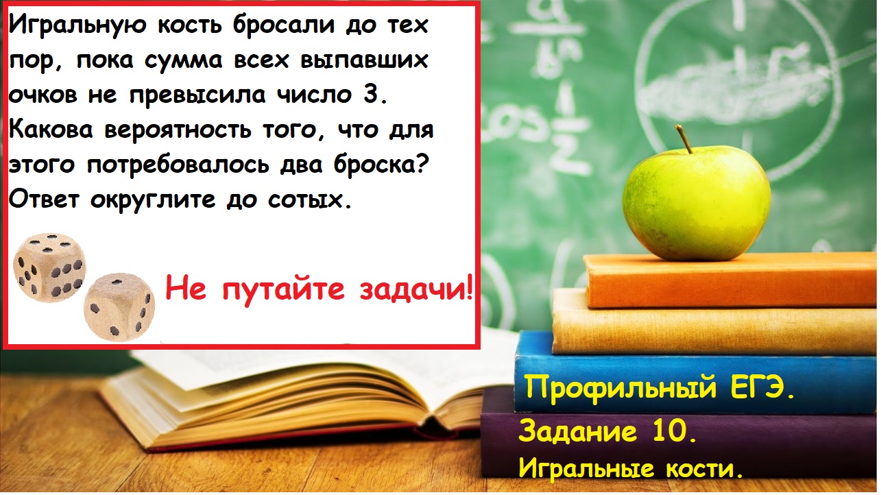 Профильный ЕГЭ 2026 .Номер 5.Теория вероятности про игральные кости. Сумма очков не превысила 3.