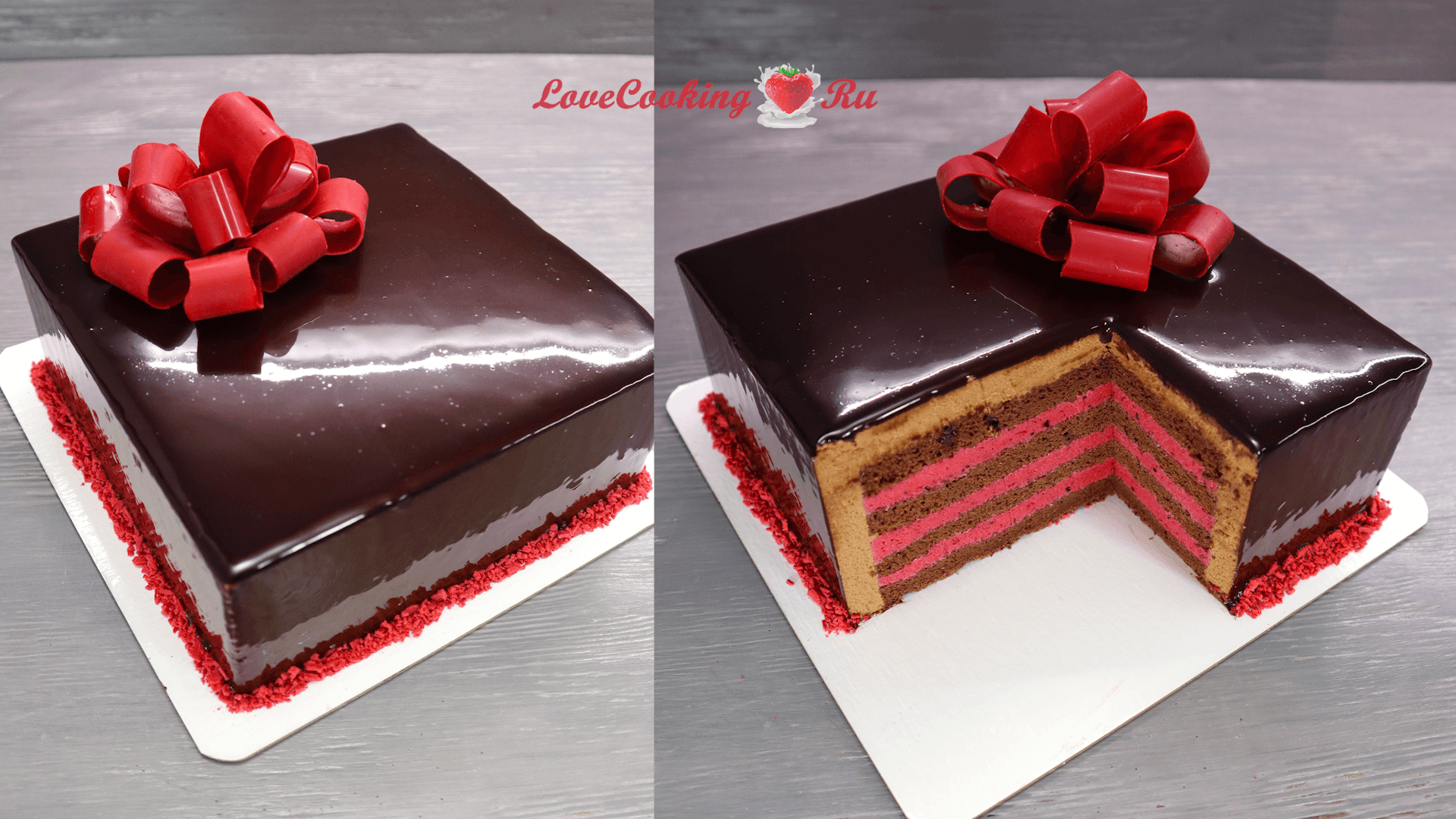 Шоколадный муссовый торт "Подарок" | Шоколадный бисквит, ягодный мусс | LoveCookingRu
