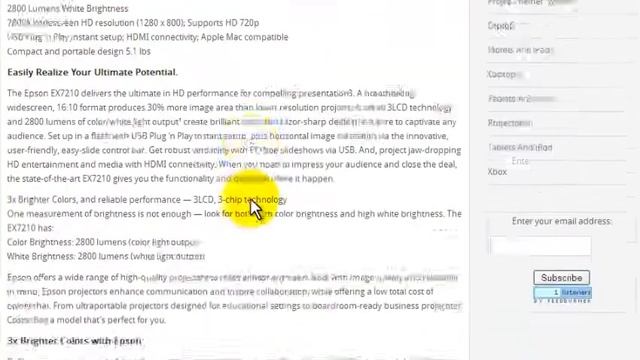 Epson EX7210 Projector The Epson EX7210 Multimedia Projector is a portable, easy to set up and use business projector with a good feature set and range of ports. Its data image quality isn't perfect, but should be fine for typical business presentations made to small groups. Full Review http://www.likehomeshopping.us/epson-ex7210-projector.html