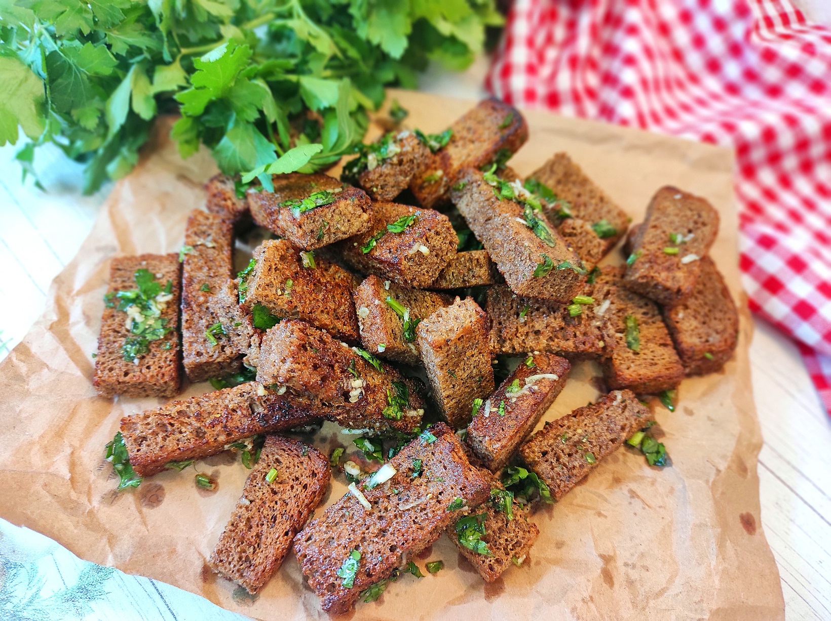 ГРЕНКИ ИЗ ЧЕРНОГО ХЛЕБА с чесноком и зеленью!