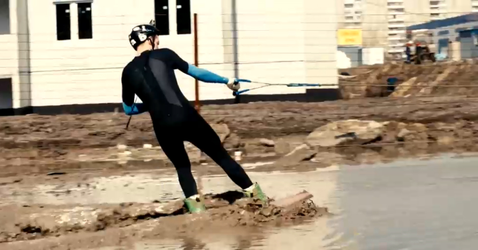 Челябинский вейкбордист Артём Несытых прокатился по грязевым лужам города. #прикол #грязь #лужы #покатушки #рашка