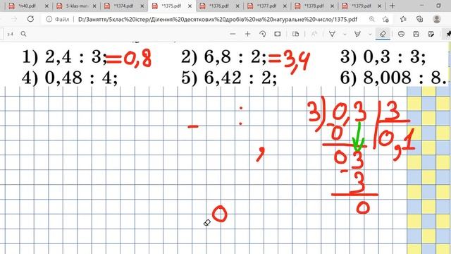 Відповіді до вправи № 1375 Ділення десяткового дробу на натуральне число параграф 40 Математика -фізика для 4-9 класів - 067 315 80 10 (вайбер)