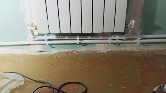 Делаю новое пластиковое отопление . Спаял трубы под первым радиатором .