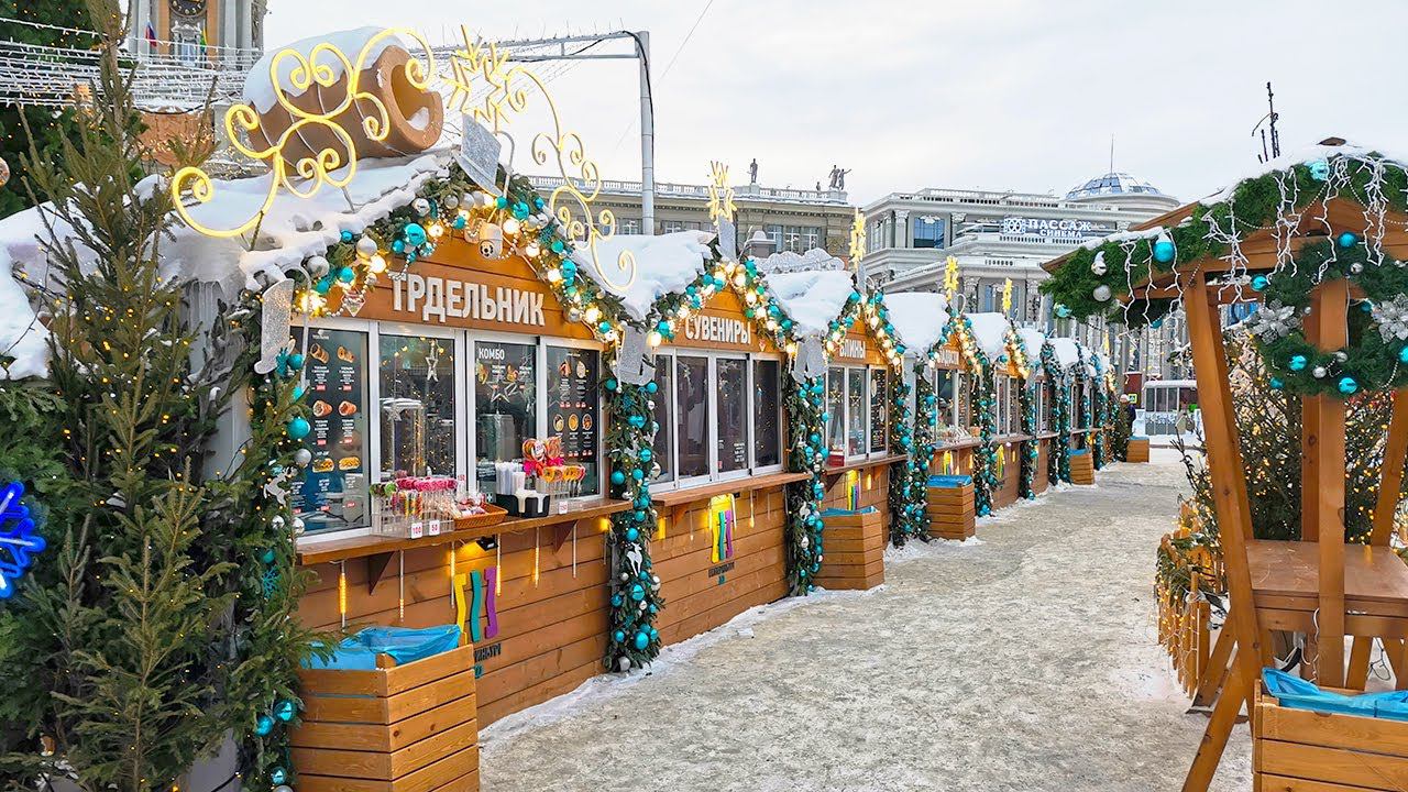 Walking in Ekaterinburg. Holiday Square |4K| - Winter 2024 (January)