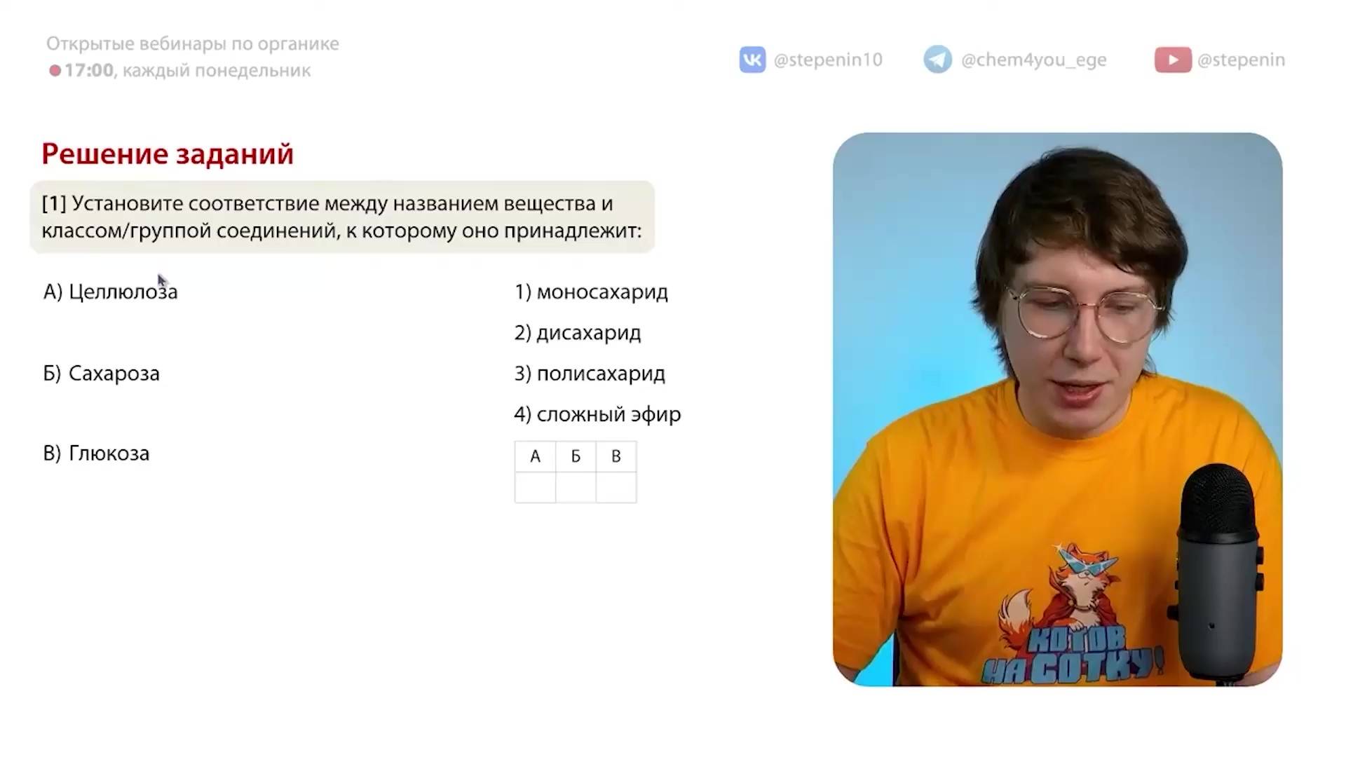 🧪 Подготовка к ЕГЭ по химии на самые высокие баллы на наших курсах: http://stepenin.ru Телефон Андрея Степенина: +7 926 625-73-33 📚 Много полезного образовательного контента на наших площадках База заданий (огромная): http://stepenin.ru/tasks Группа Химического кота (ЕГЭ по химии): https://vk.com/chem4you Группа для 10 класса: https://vk.com/stepenin10 Группа 9 класса: https://vk.com/chem4you_oge Группа ЕГЭ по биологии: https://vk.com/bio4yo
