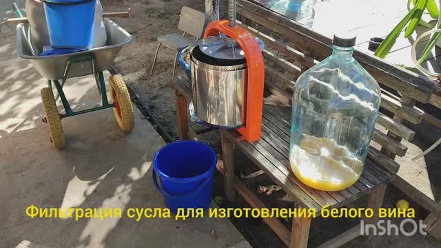 Отфильтровал сусло через пресс, замерил сахар, добавил ЧКД и поставил на дображивание для белого сухого вина.