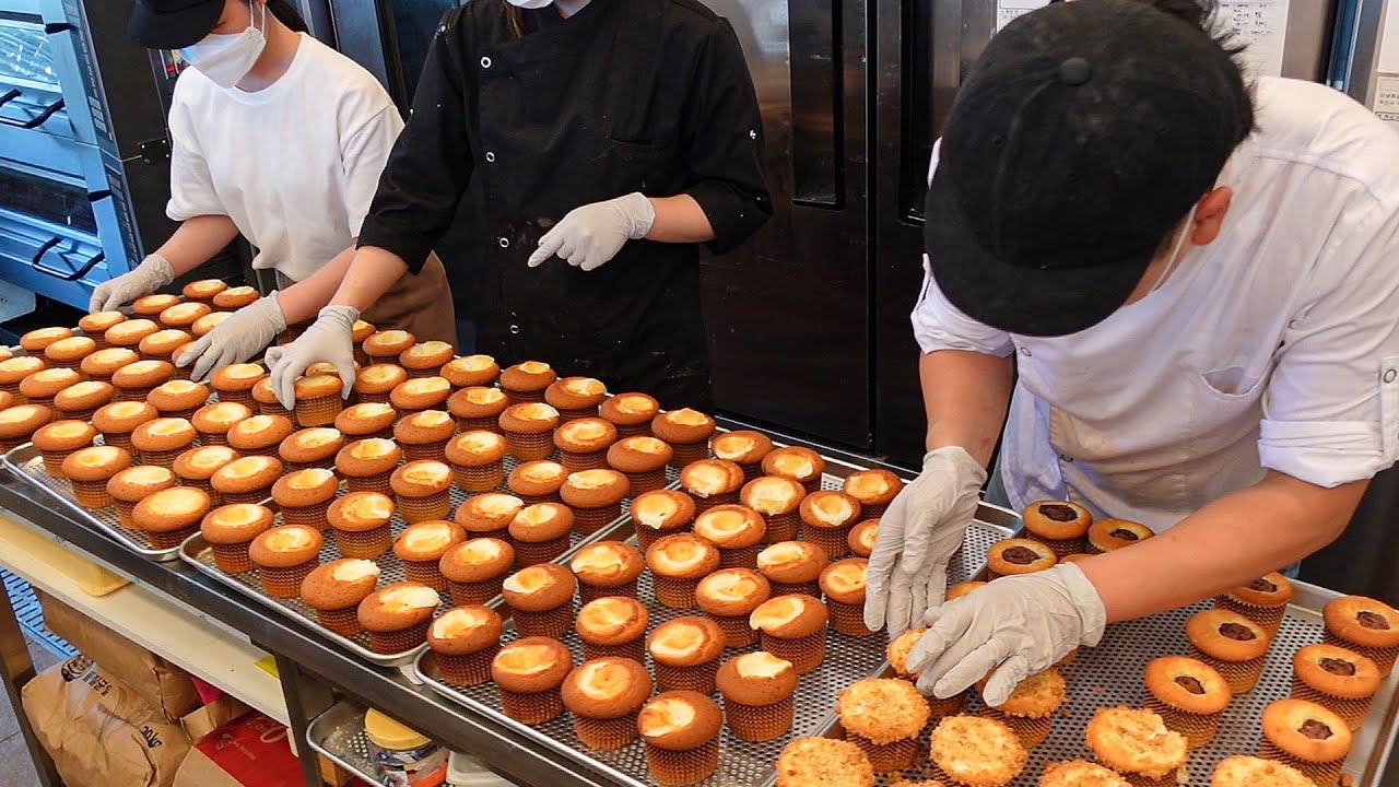 Производство кексов со сливочно-сыром из сладкого картофеля - вкусный корейский десерт.