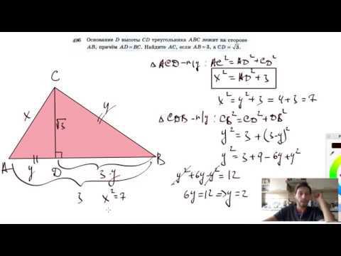 №496. Основание D высоты CD треугольника ABC лежит на стороне АВ, причем AD=BC. Найдите АС, если АВ=3, a CD = √3 . Поддержать канал рублём - 5469400944002125 (Сбербанк) Мой второй канал для подготовки к ЕГЭ и ОГЭ - https://www.youtube.com/ЕвгенийСумин Инстаграм - https://www.instagram.com/EGE_OGE.math Личный инстаграм - https://www.instagram.com/ee_sumin VK - https://vk.com/evgeniysumin FB - https://www.facebook.com/EvgeniySumin