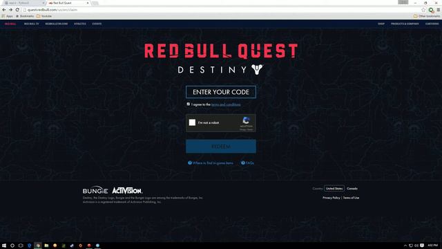 Hey Guys! Just a quick video to show you guys how to get free destiny red bull quest codes! This does not require any download, make sure to Like and Subscribe for more content. If the Website is down run your browser in private mode Links: Website for codes: https://repl.it/wHH/553 Creator: https://www.youtube.com/channel/UC0B7QdJzbiHt96uKbvmFghg
