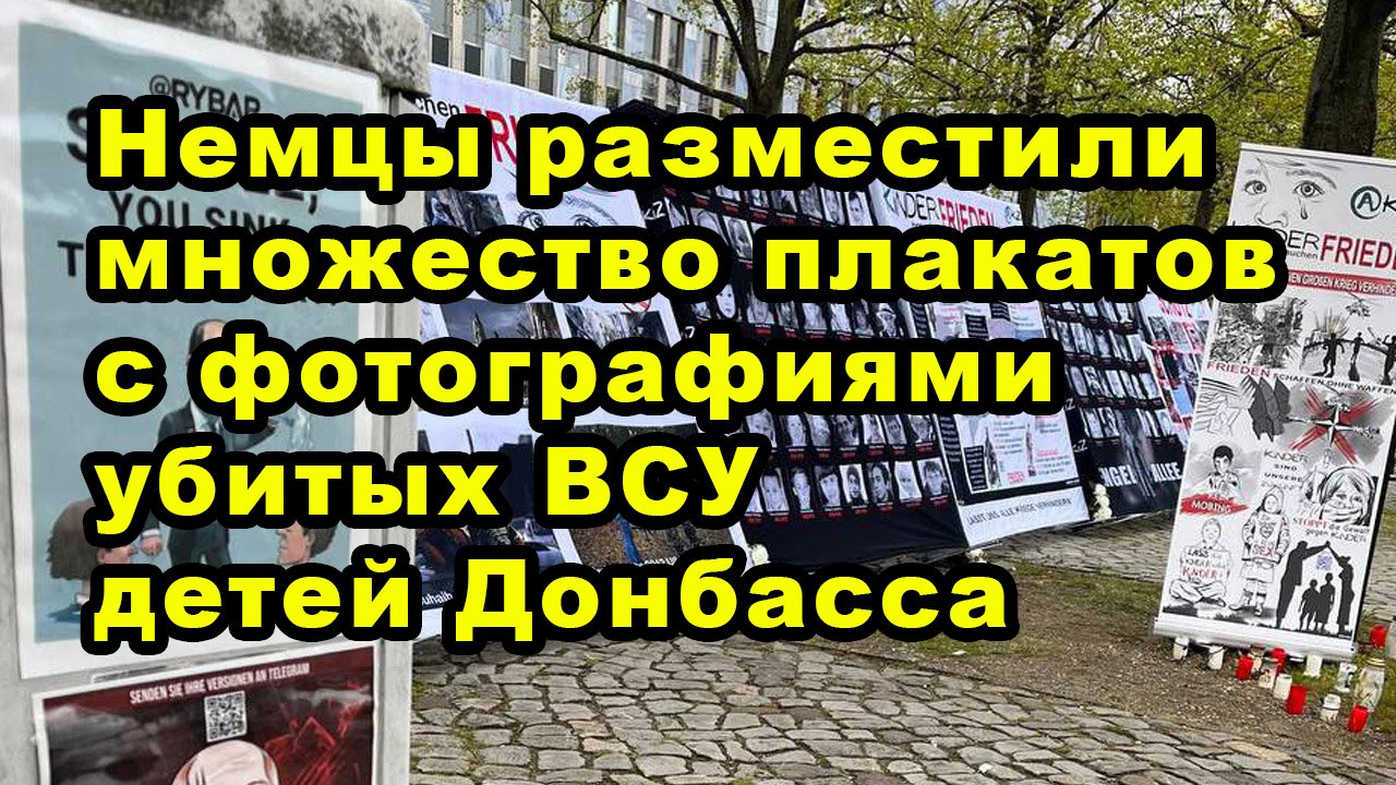 Немцы разместили множество плакатов с фотографиями убитых ВСУ детей Донбасса