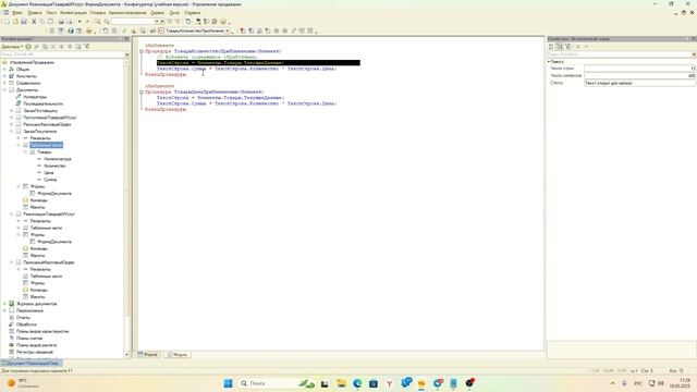 1С для начинающих. Как работают события формы. Пересчёт суммы, цены в табличной части