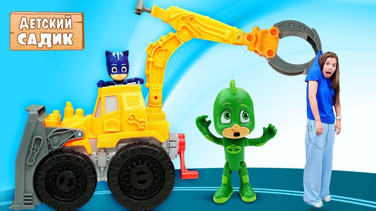 Детский сад Капуки Кануки - Герои в масках и экскаватор! Видео для детей про игрушки машинки