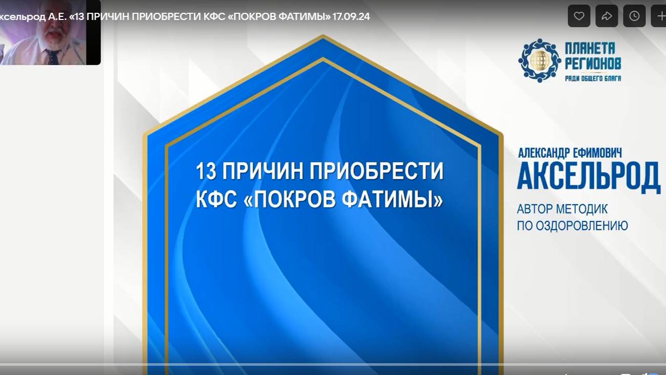 Аксельрод А.Е. «13 причин приобрести КФС «Покров Фатимы» 17.09.24