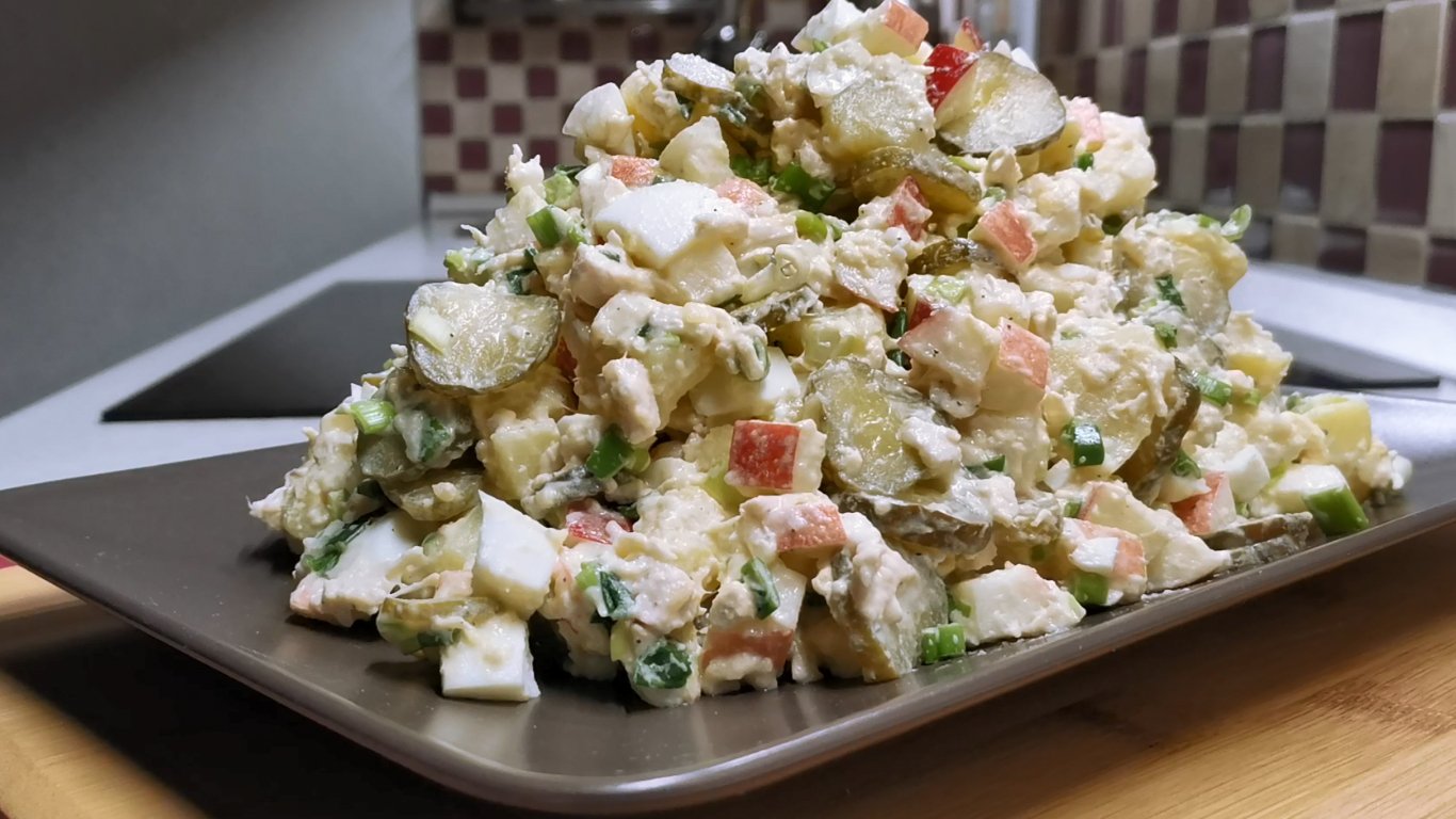 КЛАССНЫЙ САЛАТ, уходит первым со стола! Очень вкусный и сытный картофельный салат с курицей.mp4