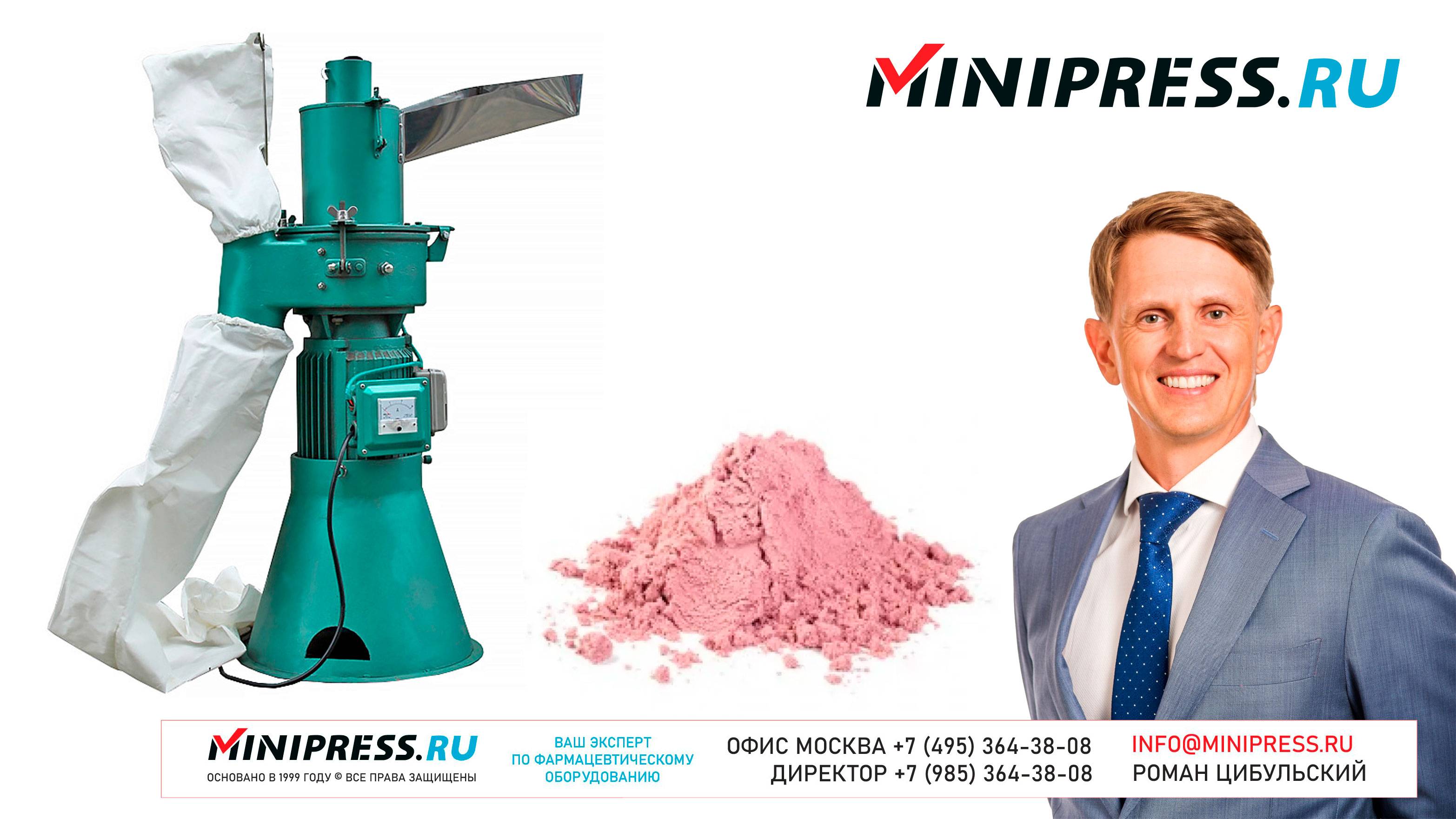 Универсальная молотковая мельница PROFI-02 https://Minipress.ru/katalog/ Фармацевтическое оборудование. Специалисты в фармацевтическом оборудовании и технологиях производства лекарств. Более 20 лет оказываем нашим клиентам помощь в выборе, поставке, наладке различного фармацевтического оборудования! Вы в поиске надежного поставщика оборудования? Мы предоставим вам лучший сервис 24/7. Собрана лучшая команда профессионалов в фармацевтической отрасли и налажены стабильные связи с лучшими производителями. Мы не только продаем, но и производим многие модели оборудования Директор компании Минипресс Роман Цибульский Поставка фармацевтического оборудования в Россию Пишите: info@minipress.ru Телефон +7(495)364-38-08; Мобильный +375(29)308-00-00 Россия, Москва Skype: RomanTsibulsky; ICQ: 310-134-490 Подписывайтесь на наш видео канал на Youtube https://youtube.com/user/wwwMinipressru Обновленный сайт https://Minipress.ru Каталог оборудования https://Minipress.ru/katalog/ МЫ В СОЦИАЛЬНЫХ СЕТЯХ G+ https://plus.google.com/+RomanTsibulsky/ FB https://facebook.com/roman.tsibulsky YOUTUBE https://youtube.com/user/wwwMinipressru IN https://ru.linkedin.com/pub/roman-tsibulsky/a6/933/661 БОЛЬШОЙ КАТАЛОГ ФАРМАЦЕВТИЧЕСКОГО ОБОРУДОВАНИЯ https://minipress.ru/katalog/ Постоянно обновляемый каталог различного фармацевтического оборудования с фотографиями, описаниями, видео и ценами. ПЕРСОНАЛЬНЫЙ МЕНЕДЖЕР 24 ЧАСА https://minipress.ru/katalog/ Вы общаетесь по всем вопросам, с момента первой консультации и до получения оборудования, с одним специалистом. СПЕЦИАЛИСТЫ И ТЕХНОЛОГИ https://minipress.ru/katalog/ Имеем обширные связи в фармацевтической среде, найдем любого специалиста, поможем с освоением оборудования и технологий. ОБСУЖДЕНИЕ ВАШИХ ИДЕЙ ПО ПРОИЗВОДСТВУ ПРОДУКЦИИ https://minipress.ru/katalog/ Поможем в оценке ваших идей. Большой опыт в организации различных производств и выпуске продукции. Ценные советы. ФАРМАЦЕВТИЧЕСКОЕ ОБОРУДОВАНИЕ Мы поставили перед собой задачу, помогать нашим клиентам в правильном выборе фармацевтического оборудования. Многолетний опыт подобной деятельности показывает, что многие клиенты сталкиваются, в первую очередь, с непониманием технологического процесса. Покупка оборудования должна быть финальной точкой после подробного обсуждения задачи, консультацией с производителем оборудования, отправкой сырья и материалов на фабрику, тестирования в работе. ДЛЯ ТАБЛЕТОК https://minipress.ru/katalog/category/farmacevticheskoe_oborudovanie/ Смешивание порошков, гранулирование, прессование, обеспыливание, покрытие оболочками, фасовка, упаковка, счет, нанесение логотипов ДЛЯ ЖЕЛАТИНОВЫХ КАПСУЛ https://minipress.ru/katalog/category/farmacevticheskoe_oborudovanie/kapsulyatory-dlya-tverdyh-zhelatinovyh-kapsul/ Фасовка порошков и масел, обеспыливание, счет и фасовка, упаковка, нанесение логотипов. ФАСОВКА И УПАКОВКА https://minipress.ru/katalog/category/upakovochnoe_oborudovanie/ Упаковка в пластиковые и стеклянные флаконы, блистер, фольгу, ламинированную бумагу, стеклянные ампулы, саше, стрипы, тубы, тюбики, контурную ячейку. ТЕХНОЛОГИЧЕСКОЕ https://minipress.ru/katalog/category/eksperimentalnoe-oborudovanie/ Лабораторное, аналитическое, подготовительное, отдельные машины и линии под ключ. СФЕРЫ ДЕЯТЕЛЬНОСТИ Наша компания занимается множеством направлений фармацевтического бизнеса! Предлагаем Вам посетить страницы нашего сайта https://www.Minipress.ru по различным специализациям. ОБОРУДОВАНИЕ ДЛЯ НАКЛЕЙКИ ЭТИКЕТОК НА БУТЫЛКИ АМПУЛЫ ФЛАКОНЫ https://minipress.ru/katalog/oborudovanie-s-otzyvami/oborudovanie-dlya-naklejki-etiketok-na-butylki-ampuly-flakony/ Автоматическое этикетировочное оборудование для этикеток на клеевой основе БЛИСТЕРНЫ