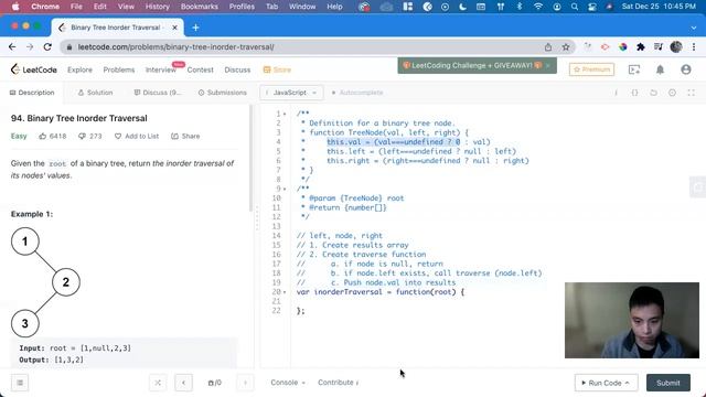 How To Solve "94 Binary Tree Inorder Traversal" on LeetCode - JavaScript Easy