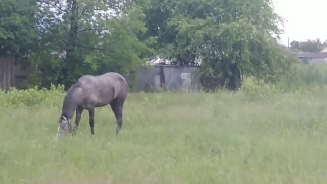Вчера вечером лошадь исчезла с привязи. Поиски в сумерках оказались без результатными, мы плохо спали, и с рассветом поехали искать по полям-лесам. А надо было сразу ехать в центр деревни, ведь беглянки спокойненько паслась на стадионе возле здания администрации. В кадр не попал момент, когда лошадка, увидев нас, заржала и радостно побежала навстречу)