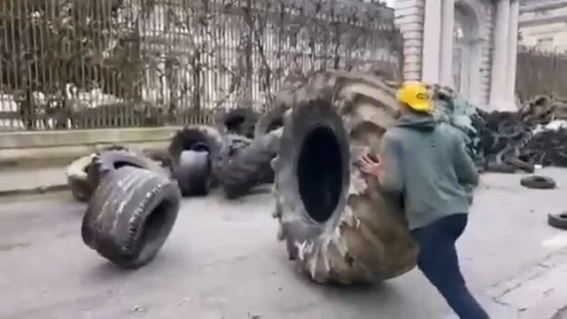 Французские фермеры вывалили тысячи тонн мусора перед правительственными зданиями.