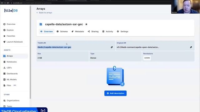 For a summary and to access example notebooks, see the blog post at https://tiledb.com/blog/analyzing-lidar-and-sar-data-with-capella-space-and-tiledb/. We were pleased to feature Jason Brown, Remote Sensing Image Scientist and Community Enablement Engineer at Capella Space (https://www.capellaspace.com/), as a guest speaker in our webinar. Also, a special thanks to Hobu, Inc. (https://hobu.co/) for providing the open-source LAS data set used in these examples. *About the presentation* Thanks to advances in remote sensing, earth observation and geospatial analytics are awash with new data sources. Combining them, however, can be a big challenge, especially wrangling data for machine learning workflows. TileDB Cloud eliminates data wrangling, with a canonical array data format and a single API that lets geospatial scientists work efficiently with both dense SAR imagery and sparse point cloud data at massive scale. In this presentation, in collaboration with Capella Space, engineers from both companies will cover technical examples featuring analysis-ready data modeled as multi-dimensional arrays, concluding in a data fusion example where open SAR imagery is combined with labeled point cloud data, suitable for ML and advanced visualization techniques. In this presentation of SAR data analytics on TileDB Cloud, you will learn how to: • Directly compute on cloud-based 2D dense arrays of Capella Space SAR imagery • Use your favorite tools via hosted geospatial notebook environments and customize them with specific Python libraries, like PCL, PDAL, Rasterio, and Scikit-Learn • Leverage TileDB arrays to visualize your own cloud-native time-series cubes of Capella Space SAR images • Slice data from different TileDB Cloud arrays and fuse the results in Jupyter notebooks for advanced analyses • Discover and scale collaborative analyses through TileDB Cloud data sharing, without large downloads and complex IAM hassles *Contents of this video* 0:00:00 – An introduction to TileDB 0:14:19 – TileDB in Geospatial 0:19:54 – Jason Brown on Capella Space and SAR 0:27:01 – TileDB Cloud refresher 0:28:58 – SAR ingest & LiDAR point overlap 0:32:57 – LiDAR ingest & visualization 0:34:21 – Export into COG 0:35:25 – Colorizing point data with SAR data 0:38:15 – SAR & LiDAR data visualization 0:39:44 – Inferred point classifications onto SAR scenes 0:42:02 – Q&A *About* TileDB makes data management and compute fast, easy and universal. Manage any data as multi-dimensional arrays and access with any tool at global scale. *Connect with us* Website: https://tiledb.com/ Twitter: https://twitter.com/tiledb LinkedIn: https://www.linkedin.com/company/tiledb-inc/ Book a personalized product demo: https://tiledb.com/demo Sign up at https://cloud.tiledb.com/auth/signup and contact hello@tiledb.com for free credits.