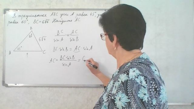 Решение задачи. В треугольнике АВС угол А равен 45 градусов, угол В равен 60 градусов. Найдите АС. ОГЭ - 2023 И. В. Ященко. 50 вариантов. Вариант 16, задание 15.