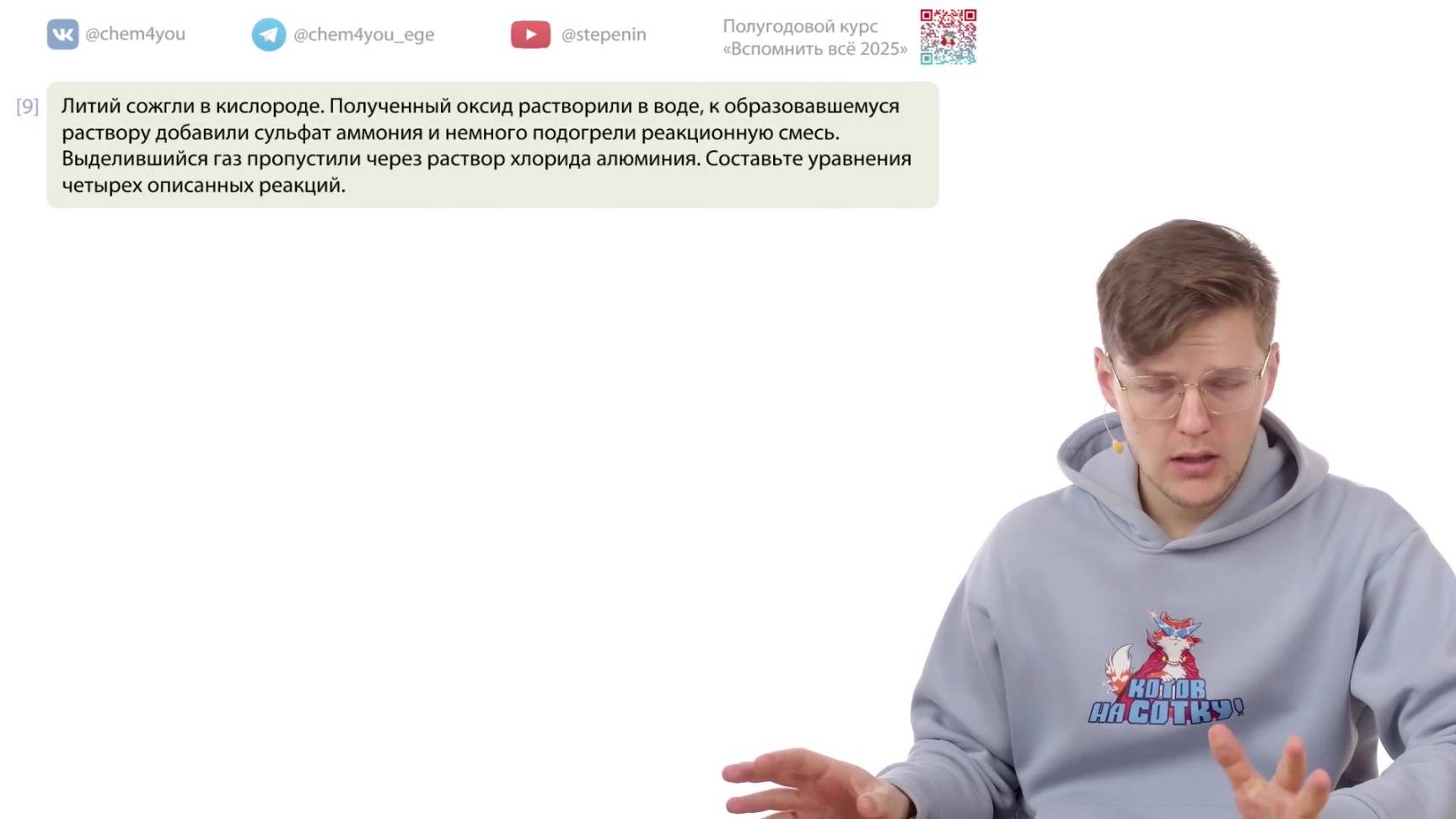 📗 Учебник по органической химии. Углубленный уровень, 10 класс, ФГОС: https://stepenin.ru/tasks/ebook-10 📑 Много тестов для подготовки к ЕГЭ по химии: 1. Задания по неорганике (больше 2000): https://stepenin.ru/tasks/common 2. Вся база заданий (больше 6000): https://stepenin.ru/tasks 💯🧠 Ждем всех на наших курсах подготовки к ЕГЭ: 👉 Курс подготовки к ЕГЭ-2025 по химии для 11 классов: https://stepenin.ru/go/6u3araee 👉 Курс подготовки к ЕГЭ-2026 по химии для 10 классов: https://stepenin.ru/go/H45L7wZZ 📚 Рабочая тетрадь по органической химии: https://stepenin.ru/store/book/book-organic 📚 Книга «Тематические тесты» (500 страниц) : https://stepenin.ru/store/book/tests-bigbook 📚 Книга «40 вариантов к ЕГЭ-2025» (350 страниц): https://stepenin.ru/store/book/sbornik30 📚 Задача 33. Углеводороды: https://stepenin.ru/store/book/hydrocarbons-book ============================= 🧪 Подготовка к ЕГЭ по химии на самые высокие баллы на наших курсах: https://stepenin.ru/go/6u3araee Телефон Андрея Степенина: +7 926 625-73-33 📚 Много полезного образовательного контента на наших площадках: 🐈 ВК химия: https://vk.com/chem4you 🦭 ВК биология: https://vk.com/bio4you ✈️ Химическая тележка 11 класс: https://t.me/chem4you_ege ✈️ Химическая тележка 10 класс: https://t.me/stepenin10 ✈️ Биологическая тележка: https://t.me/bio4you